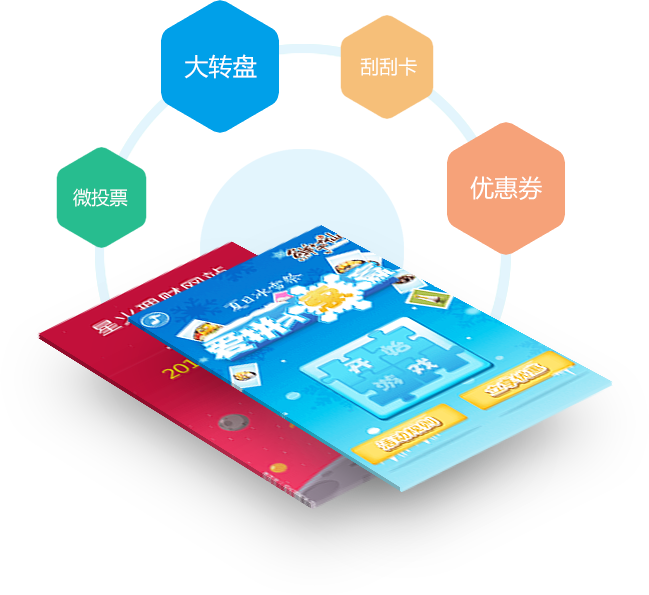 通過優(yōu)惠券推廣,幸運大轉盤、刮刮卡、微投票等功能模塊,發(fā)起營銷活動,對已有客戶進行在營銷,通過不斷更新補充主題,用戶可以反復參與,并可帶動周邊朋友一起分享,從而形成極強的口碑營銷效果。