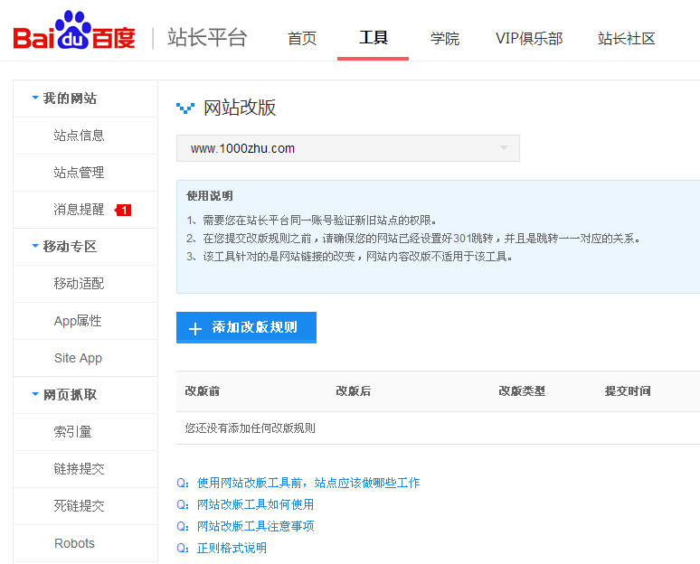 一、向百度站長平臺提交網(wǎng)站改版通知