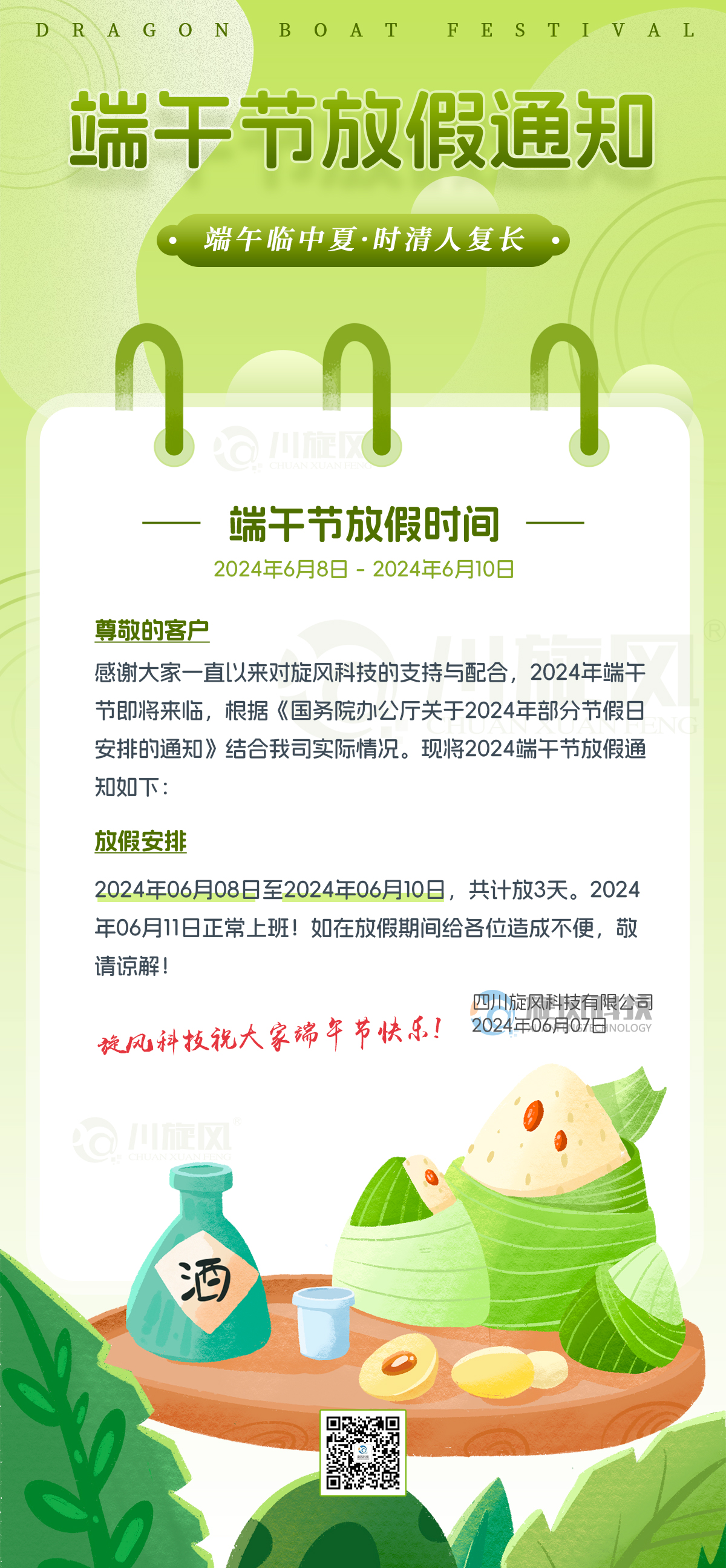 根據(jù)國務(wù)院辦公廳通知精神,現(xiàn)將2024年端午節(jié)放假安排通知如下: